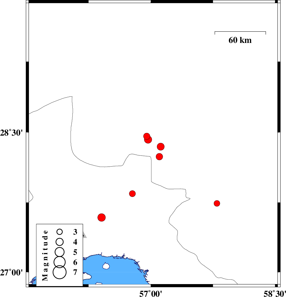 | 2023/01/10 | 16:17:06.3 | 19:47:06.3 | 27.611 | 56.316 | 12 | ML:4.3 | Hormozgan Province, 48 km North of Bandar-e abbas |