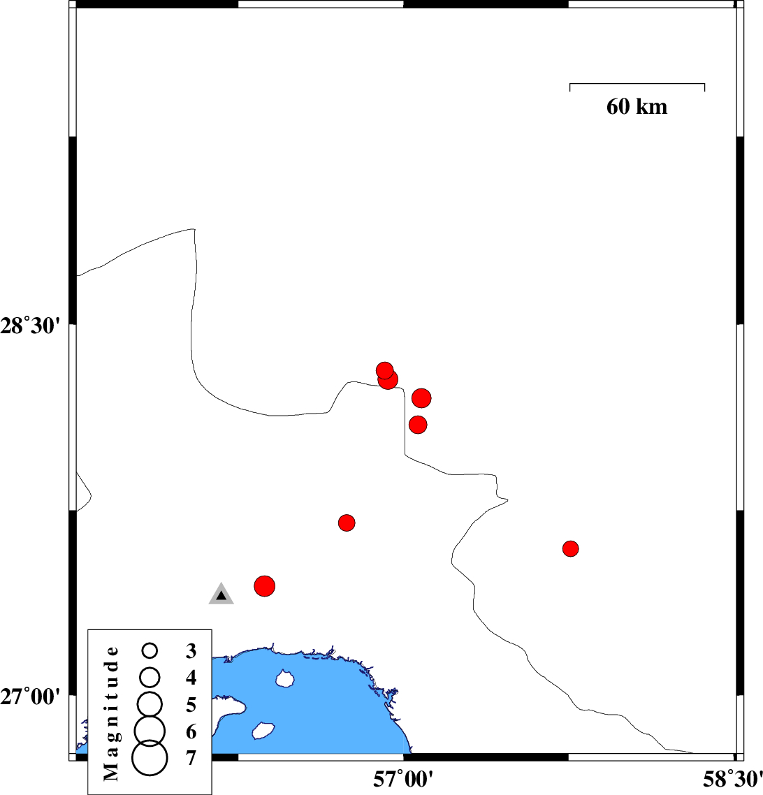 | 2023/01/10 | 16:17:06.3 | 19:47:06.3 | 27.611 | 56.316 | 12 | ML:4.3 | Hormozgan Province, 48 km North of Bandar-e abbas |