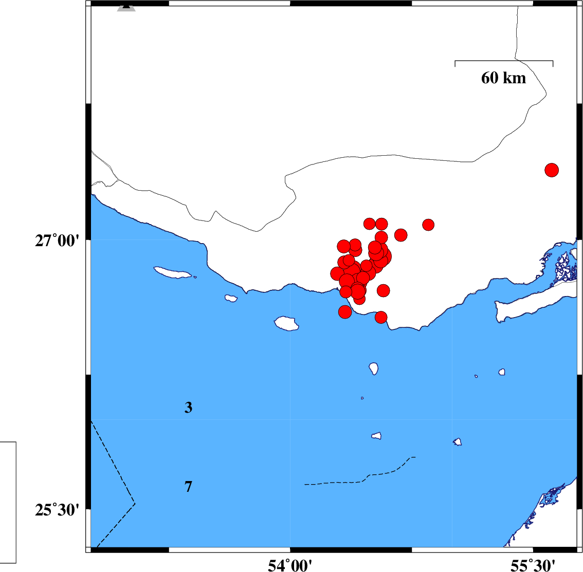 2022/06/15 19:53:54.8 00:23:54.8 26.68954.20212 ML:3.6 Persian Gulf, 59 km South-West of Bastak
