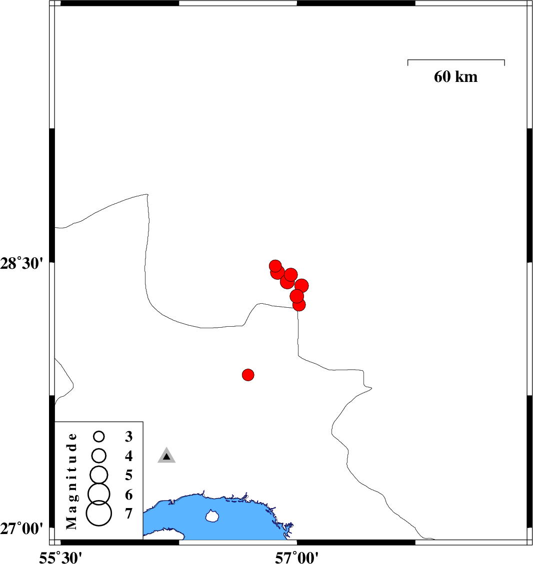 | 2023/02/09 | 13:07:51.5 | 16:37:51.5 | 27.866 | 56.688 | 7 | ML:3.4 | Hormozgan Province, 73 km North-West of Dehbarez | ||