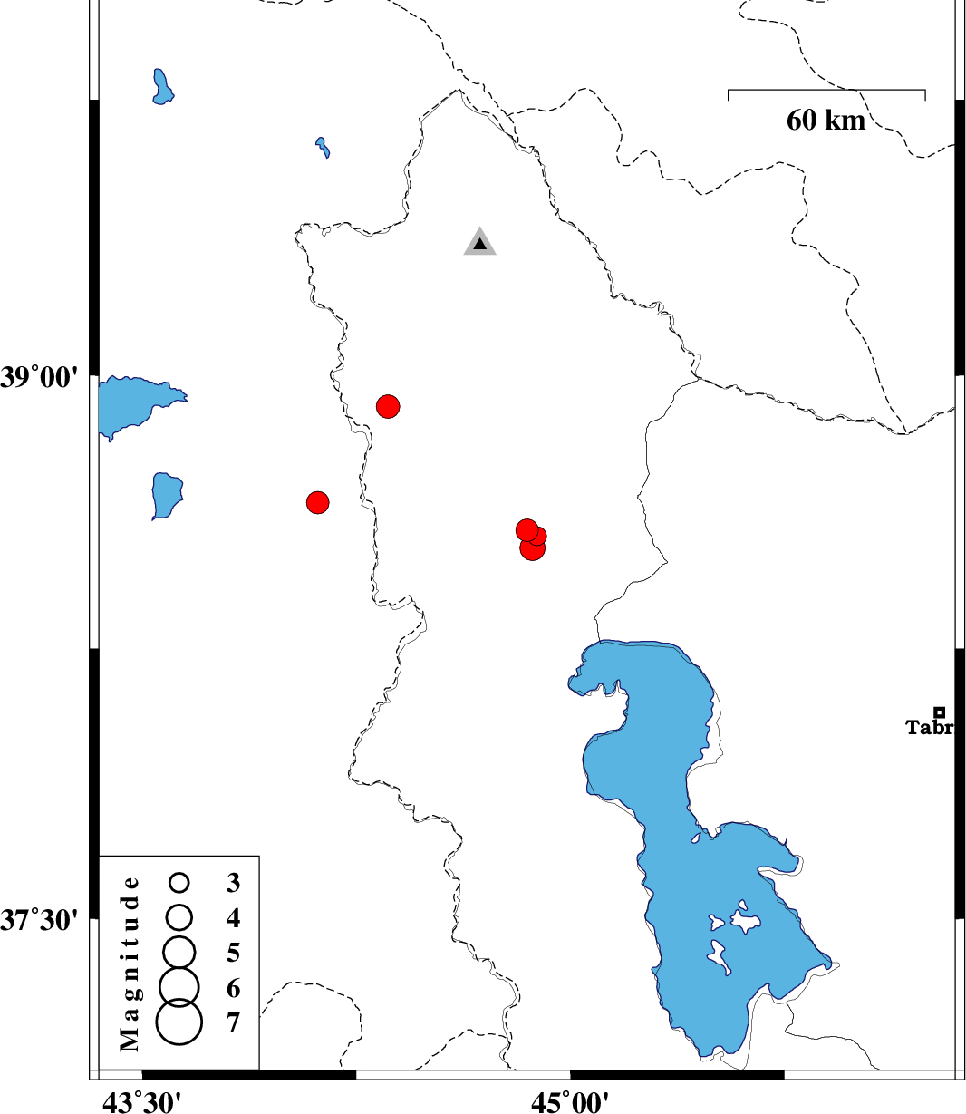 | 2023/02/09 | 18:18:09.9 | 21:48:09.9 | 38.915 | 44.361 | 10 | ML:3.6 | Azarbaijan Gharbi Province, 18 km South of Seyah Cheshmah | ||