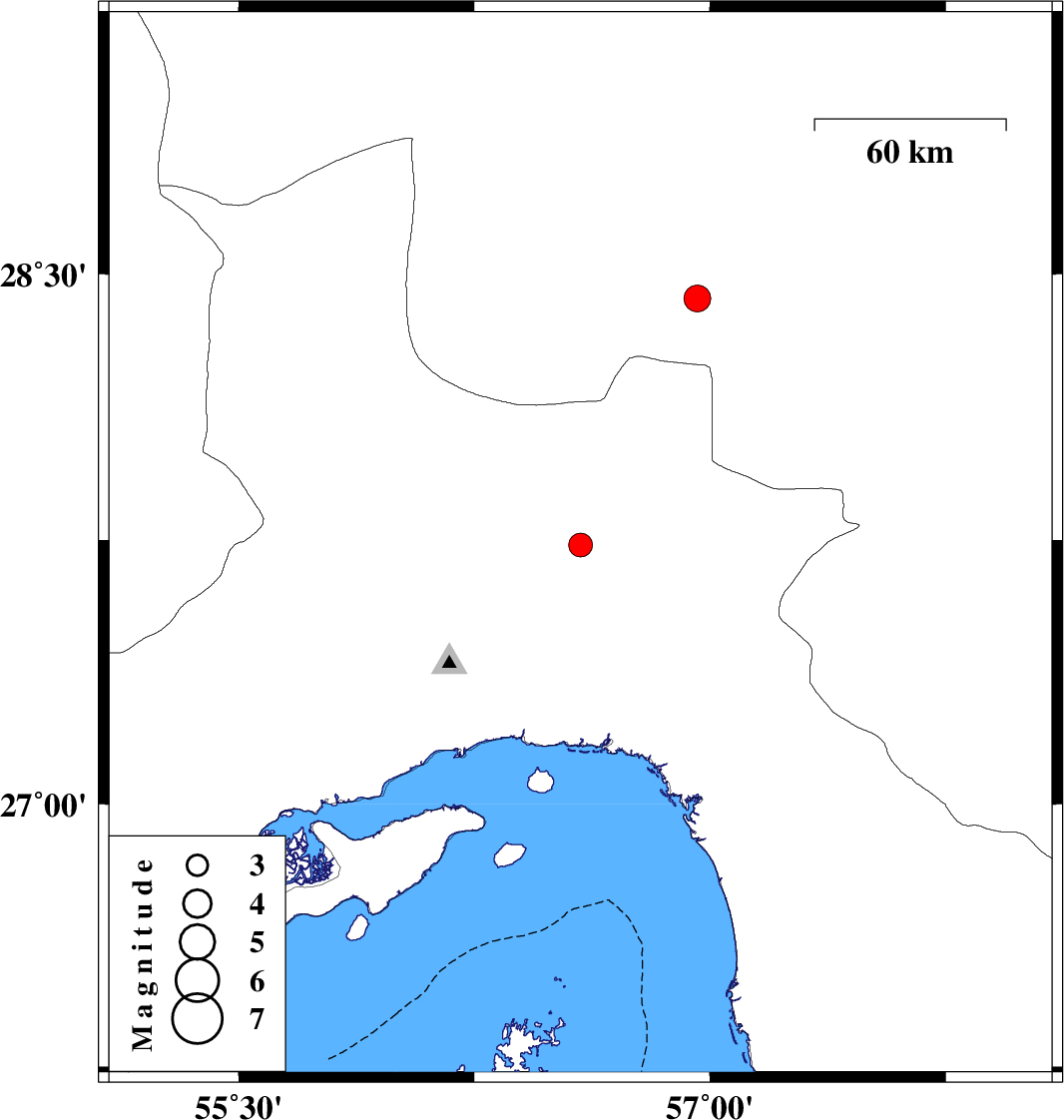 | 2023/02/15 | 07:50:50.5 | 11:20:50.5 | 28.431 | 56.96 | 12 | ML:3.8 | Kerman Province, 81 km South-West of Jiroft |