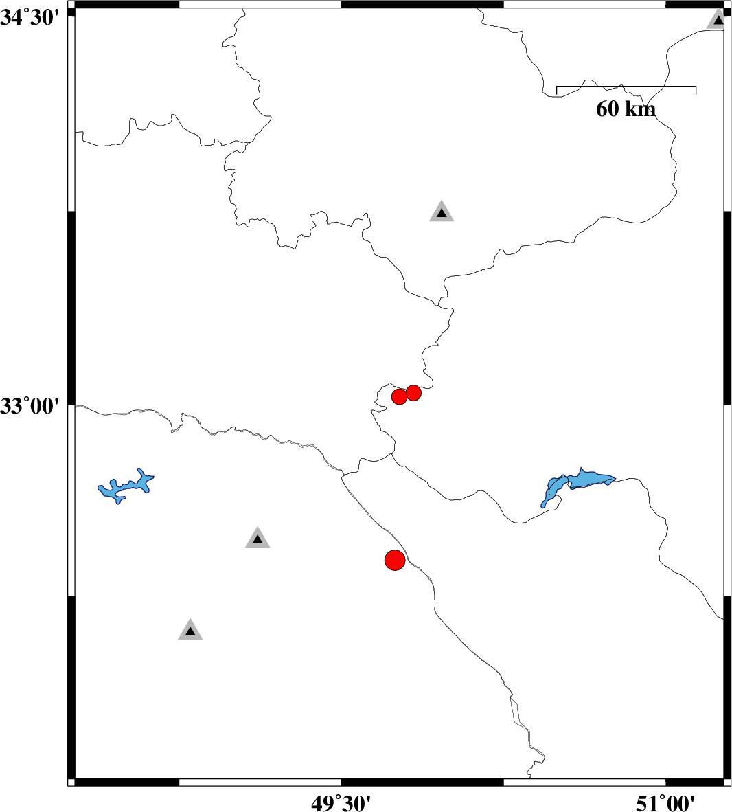 | 2023/01/30 | 17:40:26.6 | 21:10:26.6 | 33.045 | 49.833 | 10 | ML:3.3 | Esfahan Province, 28 km North-West of Fereydunshahr |