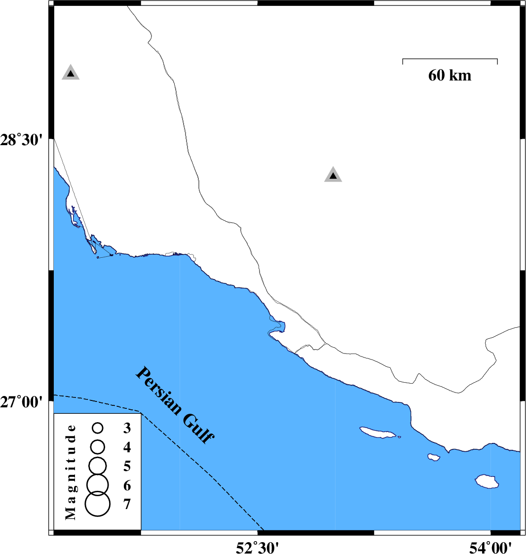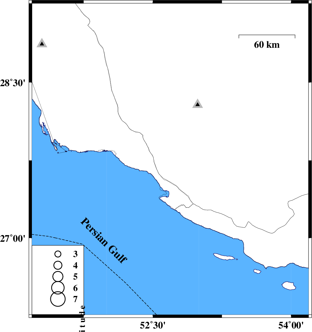 | 2023/03/01 | 11:29:30.0 | 14:59:30.0 | 27.754 | 52.689 | 14 | ML:3.4 | Fars Province, 30 km North-West of Mehr |