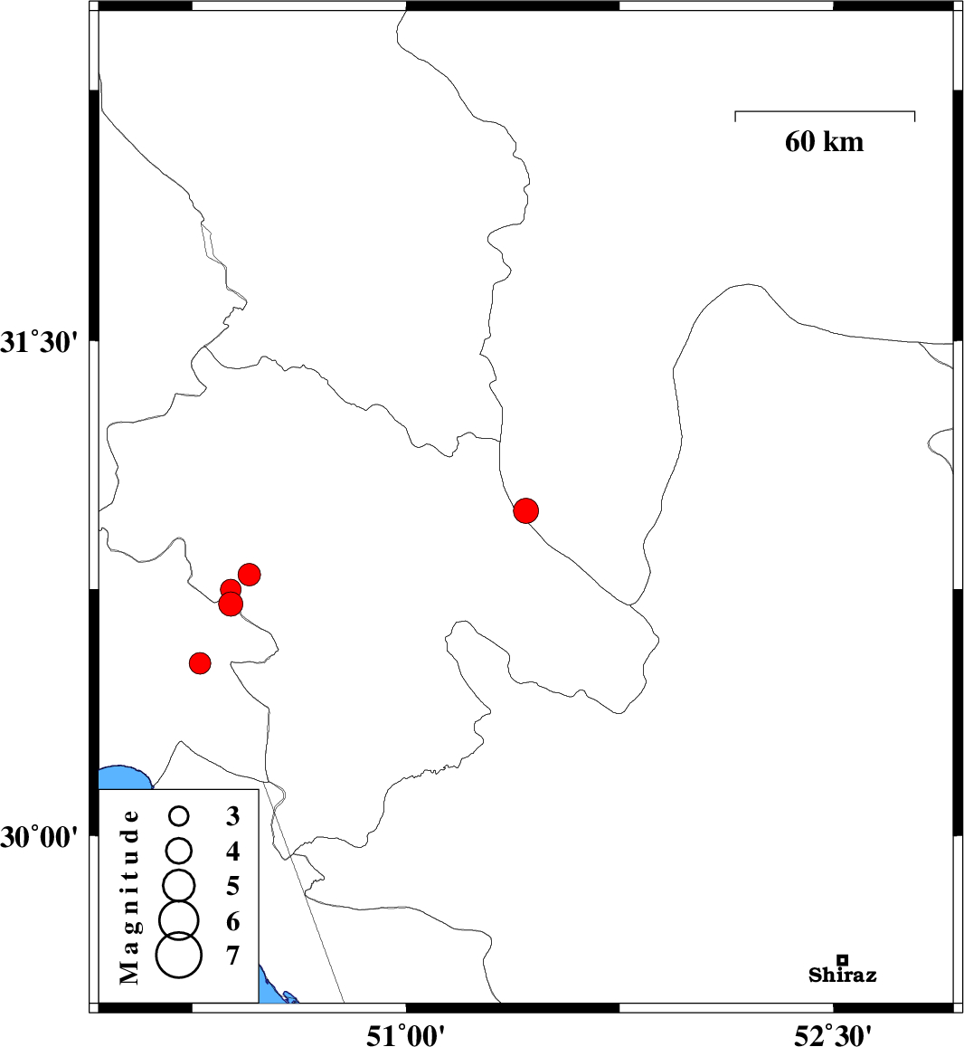 | 2023/02/21 | 01:29:17.4 | 04:59:17.4 | 30.705 | 50.385 | 8 | ML:3.8 | Khoozestan Province, 18 km North-East of Behbahan | ||