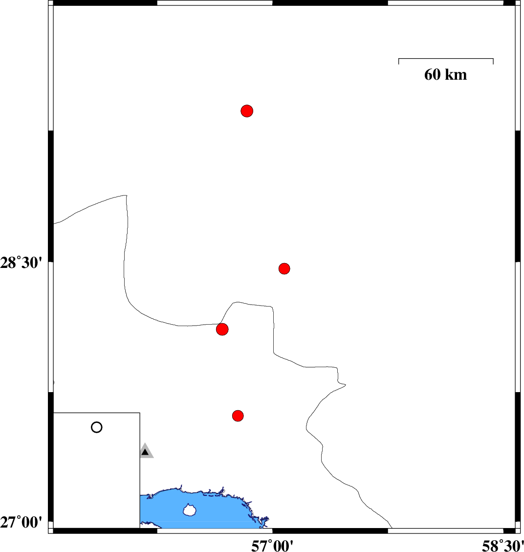 | 2023/03/03 | 13:16:32.9 | 16:46:32.9 | 28.46 | 57.076 | 9 | ML:3.3 | Kerman Province, 69 km South-West of Jiroft | ||