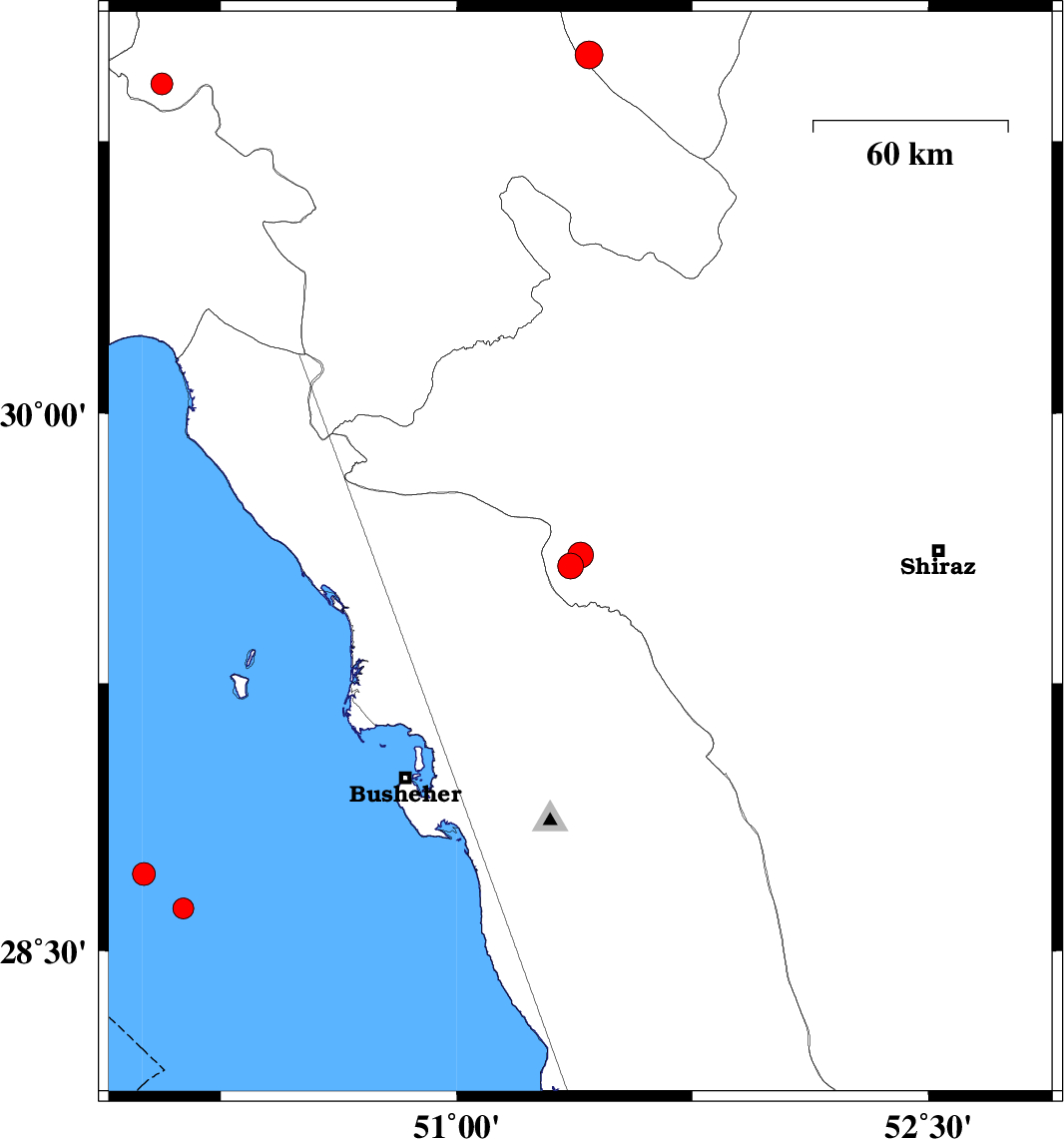 | 2023/03/06 | 15:07:48.4 | 18:37:48.4 | 28.716 | 50.005 | 12 | ML:3.2 | Persian Gulf, 86 km South-West of Busheher | ||
