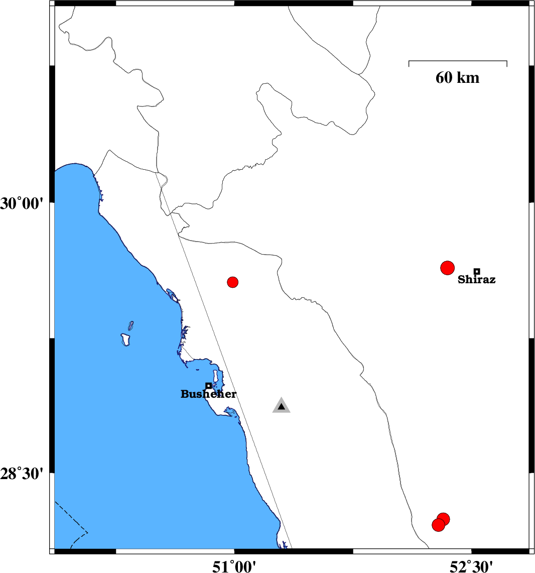 | 2023/03/06 | 15:07:48.4 | 18:37:48.4 | 28.716 | 50.005 | 12 | ML:3.2 | Persian Gulf, 86 km South-West of Busheher | ||