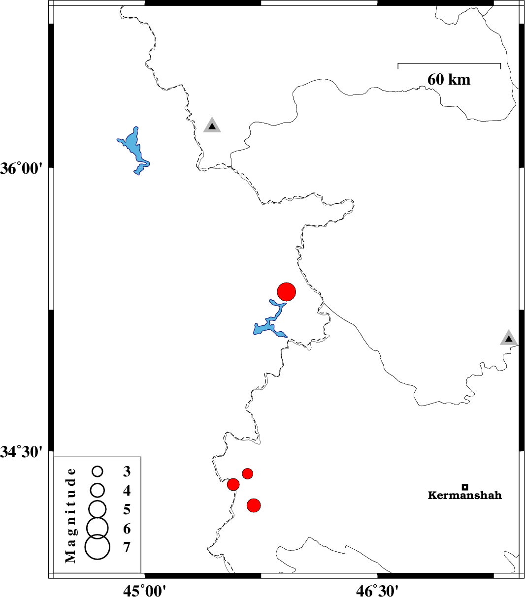 | 2023/03/04 | 05:46:01.7 | 09:16:01.7 | 34.32 | 45.57 | 12 | ML:3.5 | Kermanshah Province, 22 km South of Qasr-E-Shirin |