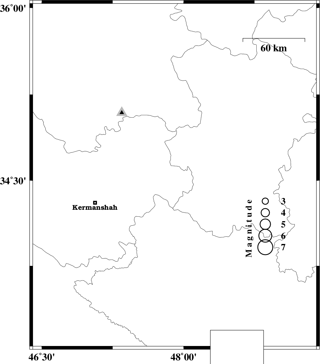 | 2023/03/21 | 15:31:03.8 | 19:01:03.8 | 34.537 | 47.905 | 10 | ML:3.4 | Kermanshah Province, 6 km of Kangavar | ||