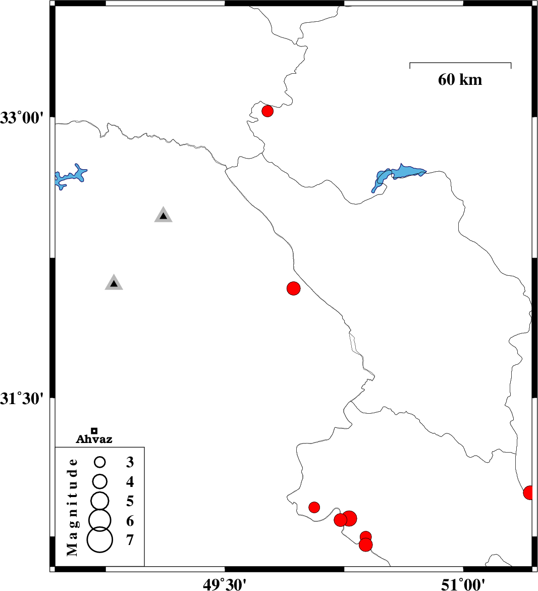 | 2023/02/21 | 01:29:17.4 | 04:59:17.4 | 30.705 | 50.385 | 8 | ML:3.8 | Khoozestan Province, 18 km North-East of Behbahan | ||