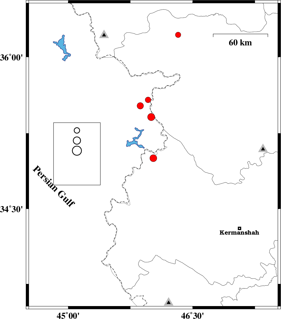 | 2023/03/04 | 05:46:01.7 | 09:16:01.7 | 34.32 | 45.57 | 12 | ML:3.5 | Kermanshah Province, 22 km South of Qasr-E-Shirin |