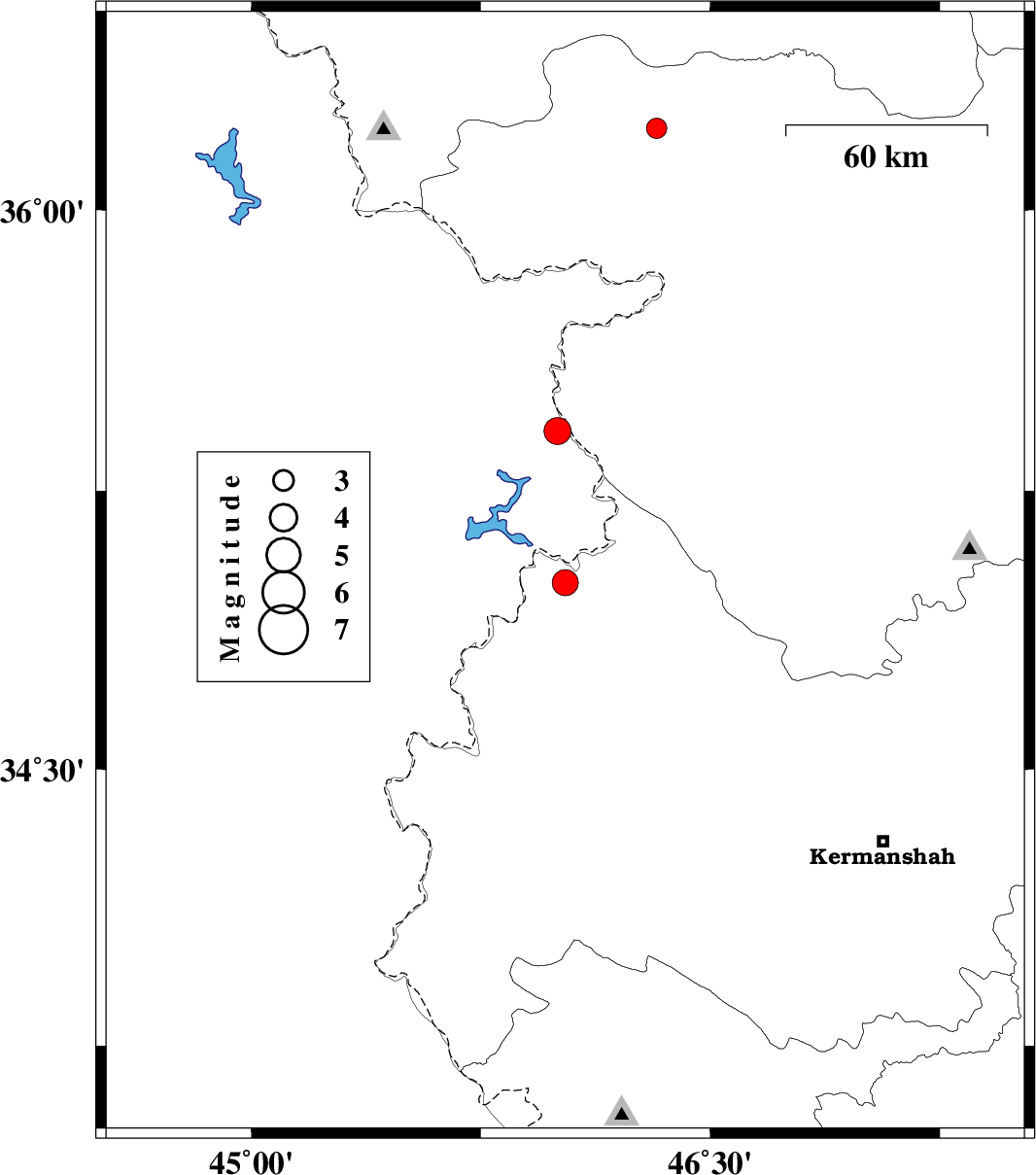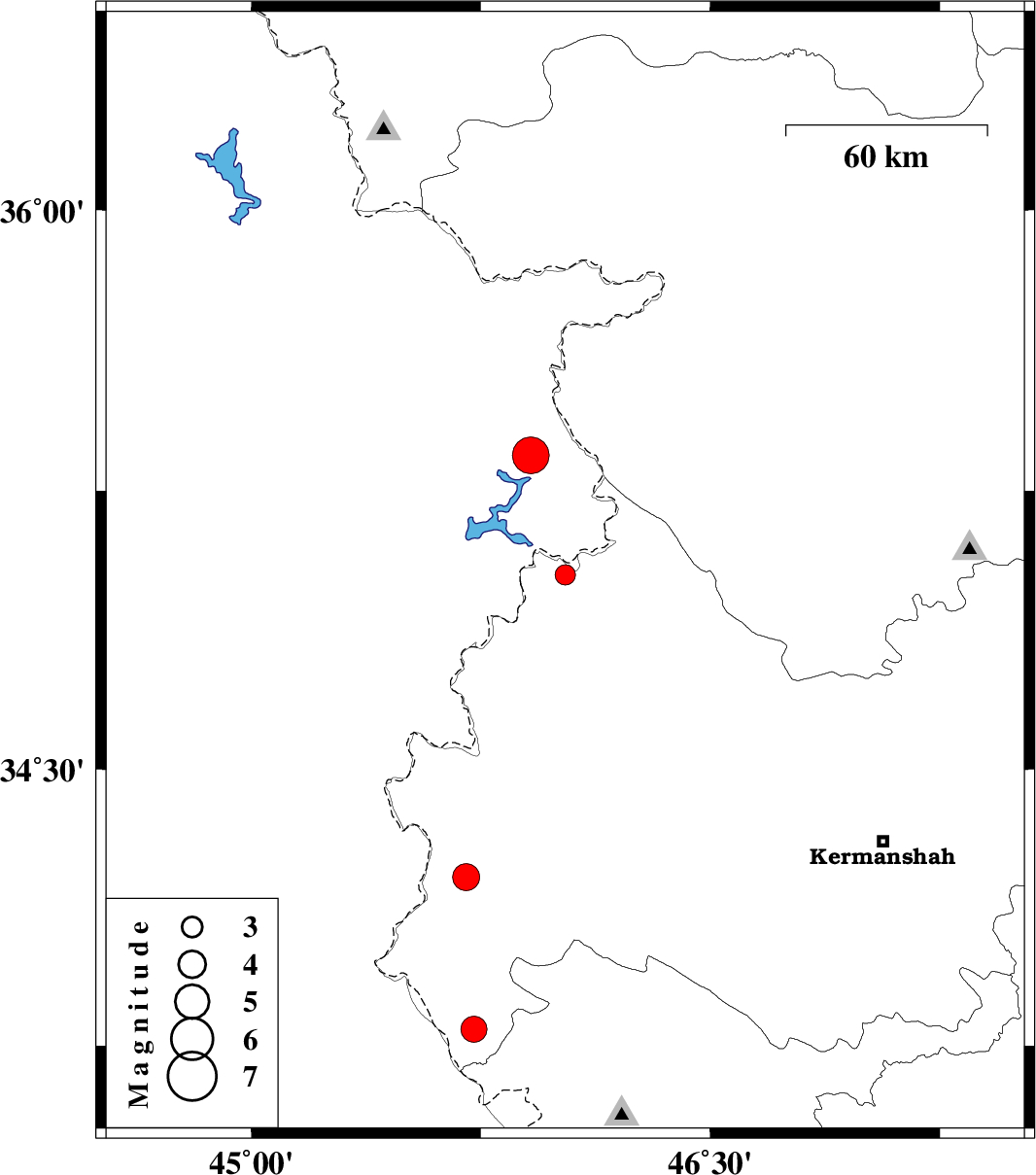 | 2023/03/12 | 06:35:33.9 | 10:05:33.9 | 34.208 | 45.702 | 12 | ML:3.9 | Kermanshah Province, 21 km -West of Gilan-E-Gharb |