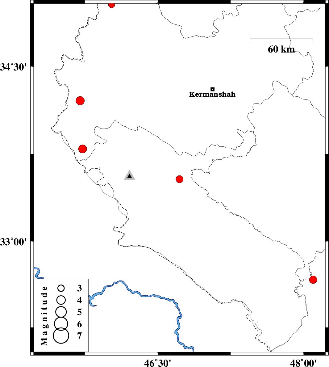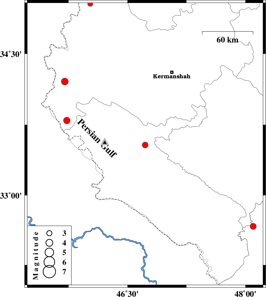 | 2023/03/12 | 06:35:33.9 | 10:05:33.9 | 34.208 | 45.702 | 12 | ML:3.9 | Kermanshah Province, 21 km -West of Gilan-E-Gharb |