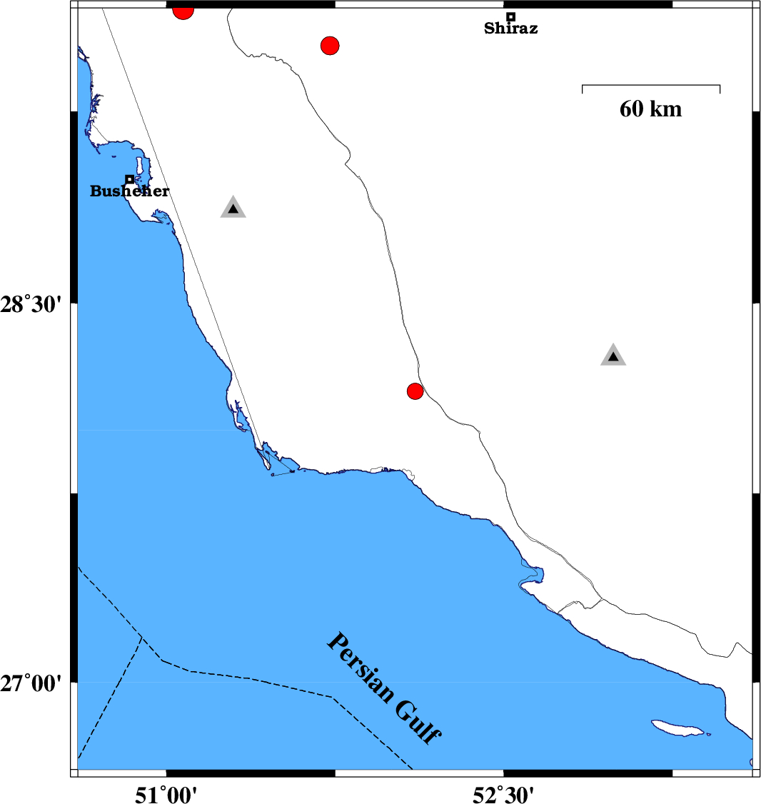 | 2023/03/19 | 08:28:43.4 | 11:58:43.4 | 29.65 | 51.075 | 10 | ML:4.3 | Bushehr Province, 45 km North-West of Borazjan | ||