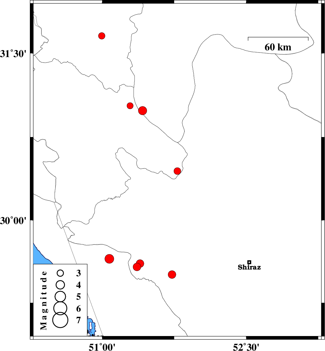| 2023/03/19 | 08:28:43.4 | 11:58:43.4 | 29.65 | 51.075 | 10 | ML:4.3 | Bushehr Province, 45 km North-West of Borazjan | ||