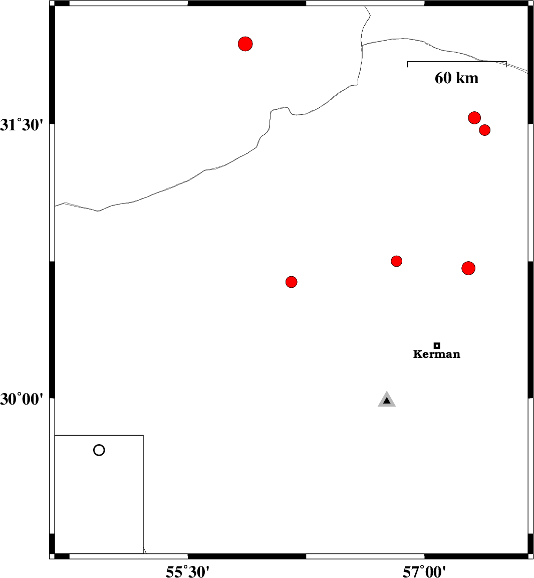 | 2023/04/03 | 01:38:30.9 | 05:08:30.9 | 30.638 | 56.156 | 12 | ML:3.3 | Kerman Province, 30 km North-East of Rafsanjan | ||