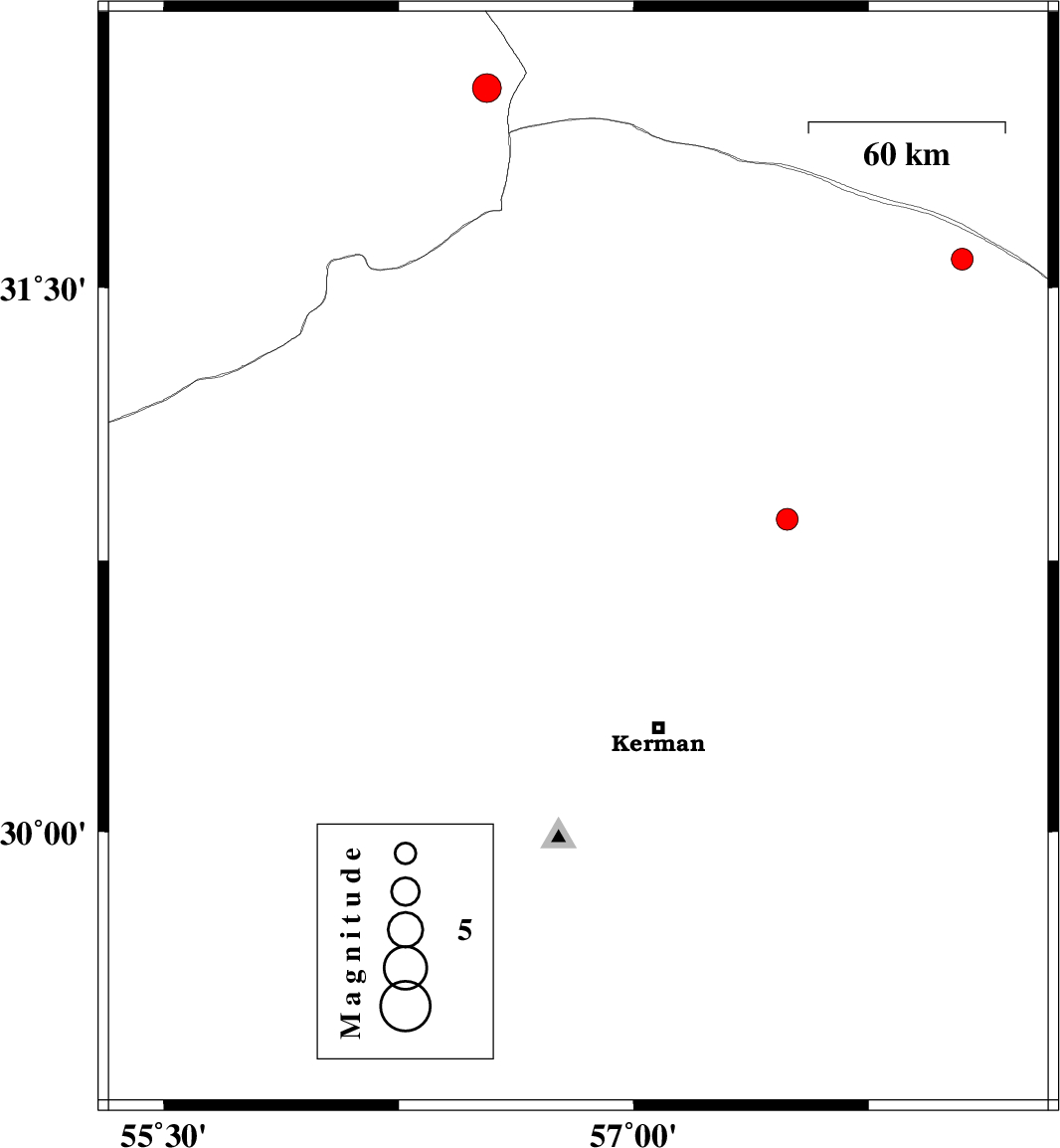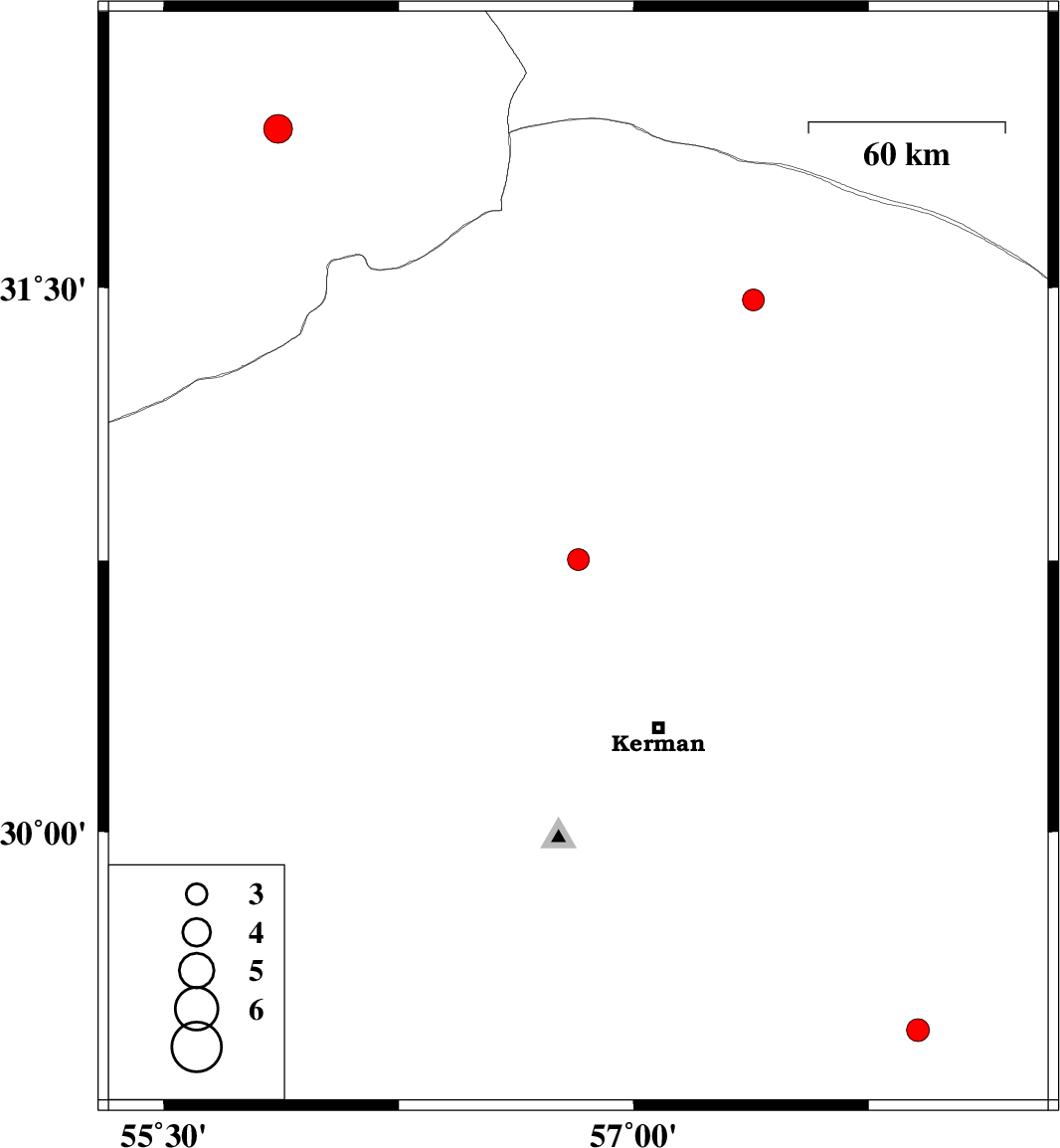 | 2023/03/25 | 09:00:08.6 | 12:30:08.6 | 29.447 | 57.908 | 10 | ML:3.3 | Kerman Province, 58 km North-West of Bam |