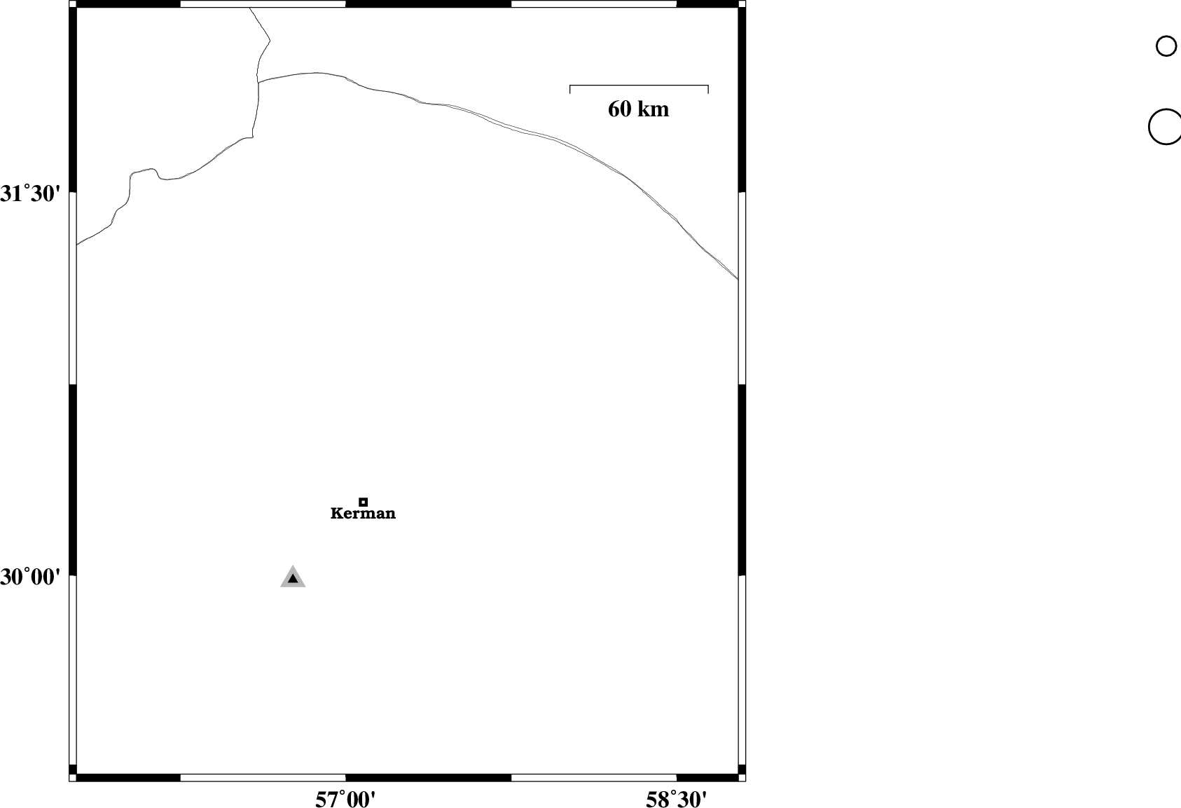2023/03/25 | 09:00:08.6 | 12:30:08.6 | 29.447 | 57.908 | 10 | ML:3.3 | Kerman Province, 58 km North-West of Bam |