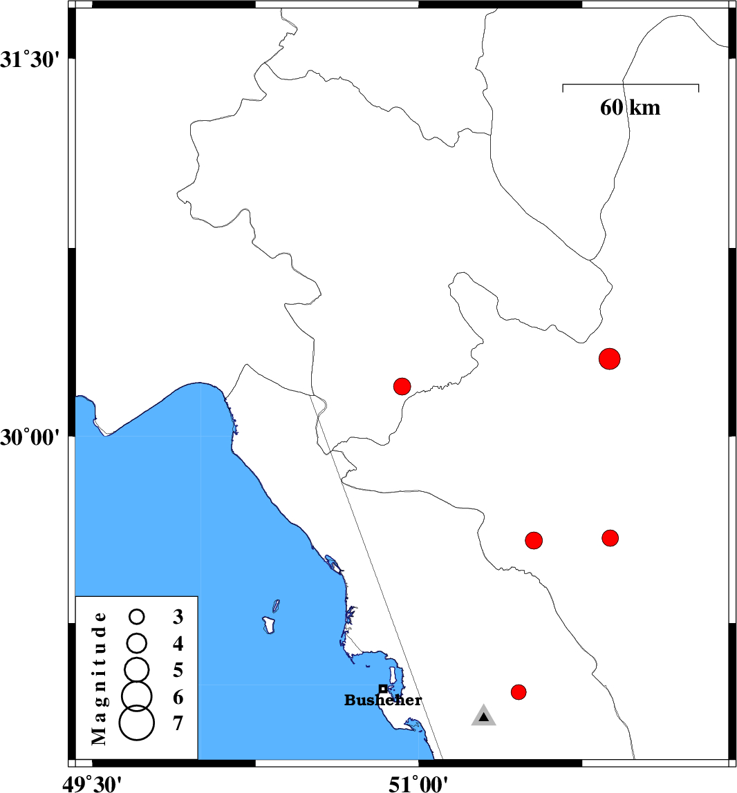 | 2023/03/29 | 23:05:56.4 | 02:35:56.4 | 28.97 | 51.458 | 15 | ML:3.1 | Bushehr Province, 22 km -East of Ahram | ||