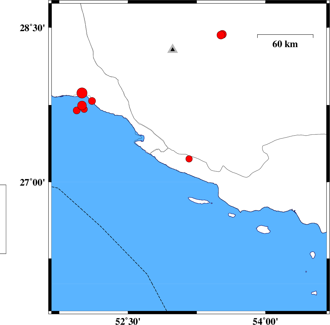 Persian Gulf, 61 km South-West of Bastak | |