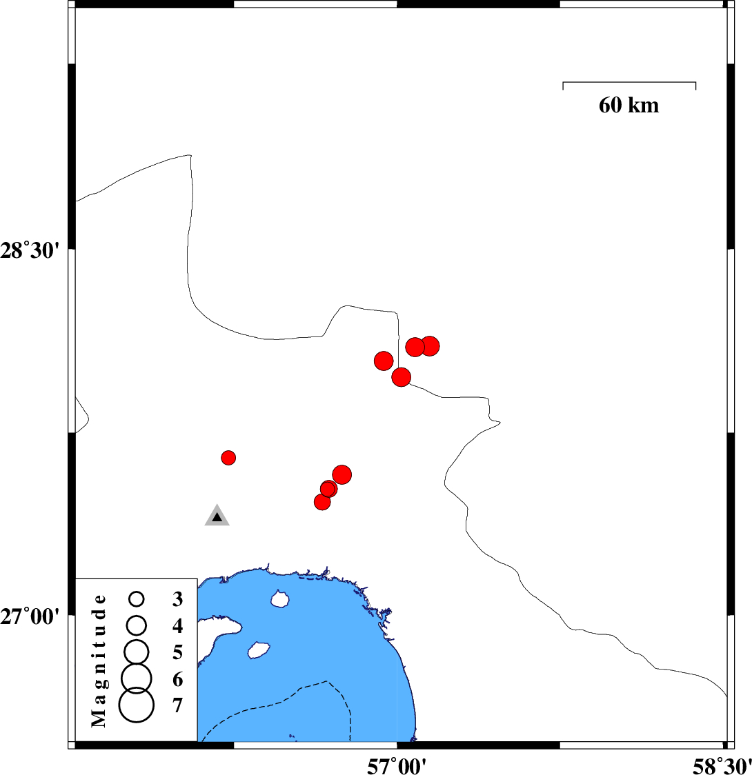 | 2023/04/03 | 03:55:05.0 | 07:25:05.0 | 28.043 | 56.938 | 12 | ML:4 | Hormozgan Province, 75 km -West of Kahnuj |