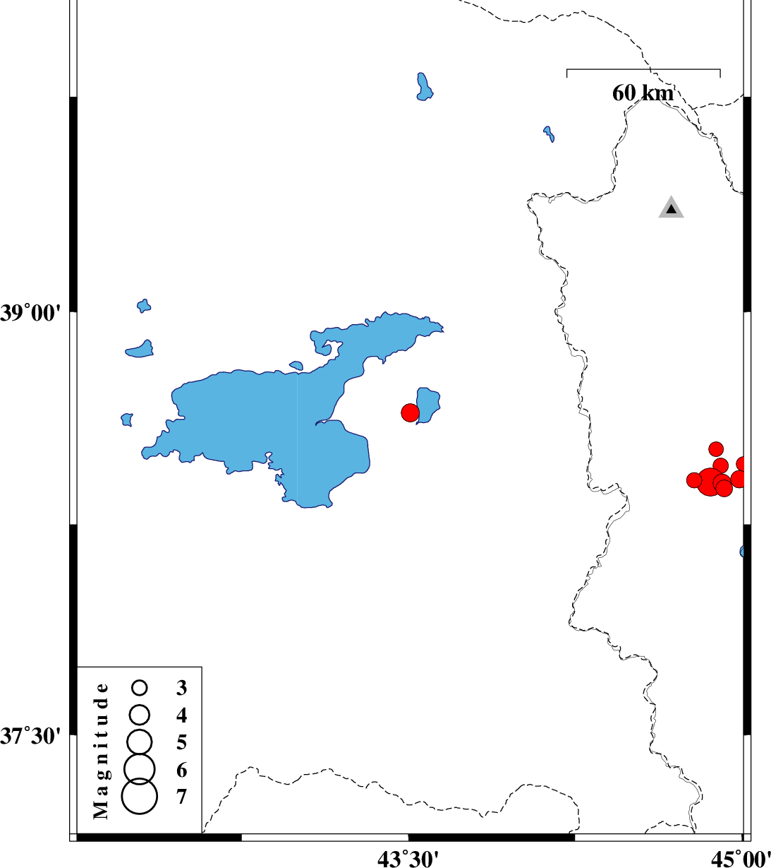 | 2023/04/06 | 13:46:52.5 | 17:16:52.5 | 38.645 | 43.508 | 12 | ML:3.6 | Turkey, 91 km South-West of Seyah Cheshmah | ||