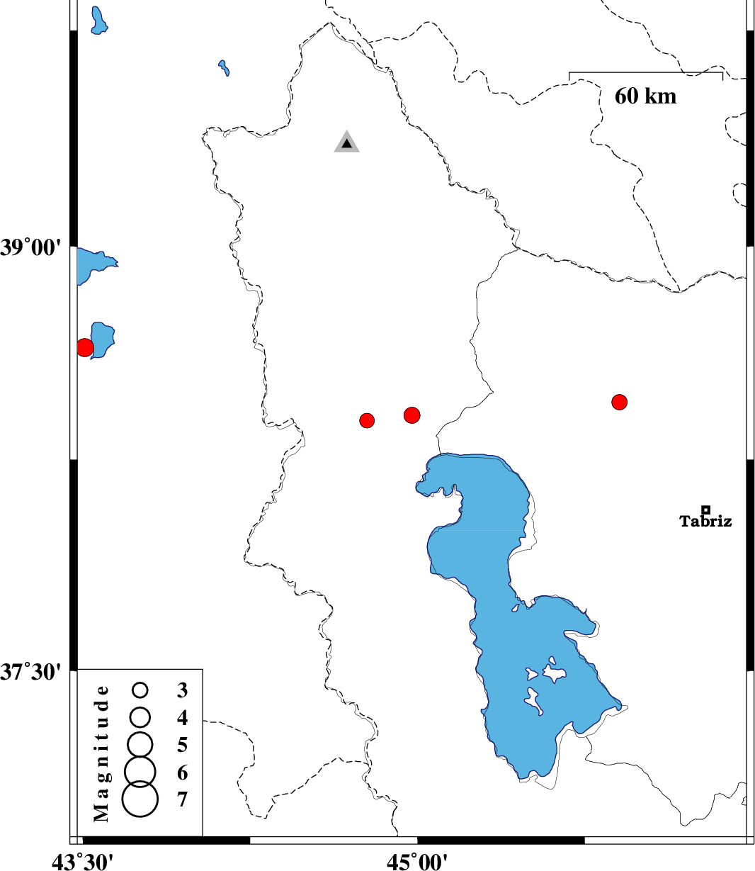 | 2023/04/03 | 12:06:17.2 | 15:36:17.2 | 38.453 | 45.906 | 12 | ML:3.1 | Azarbaijan Sharghi Province, 12 km -East of Marand |
