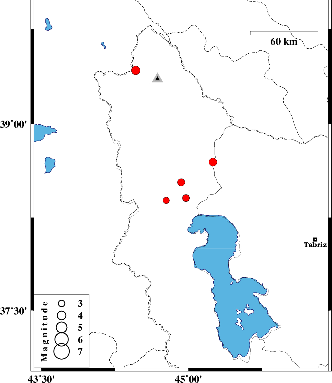 | 2023/04/11 | 11:11:16.8 | 14:41:16.8 | 38.695 | 45.249 | 12 | ML:3.6 | Azarbaijan Gharbi Province, 30 km North-East of Khoy | ||
