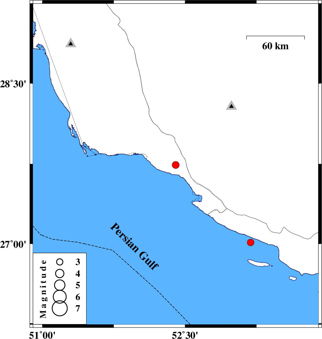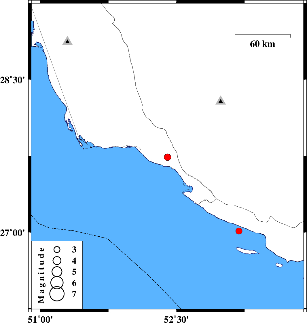 | 2023/04/11 | 21:04:06.8 | 00:34:06.8 | 27.014 | 53.189 | 12 | ML:3.3 | Persian Gulf, 36 km South of Lamerd |