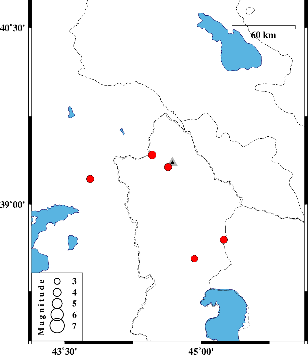 | 2023/04/17 | 04:07:18.9 | 07:37:18.9 | 39.217 | 43.781 | 12 | ML:3.7 | Turkey, 57 km North-West of Seyah Cheshmah | ||