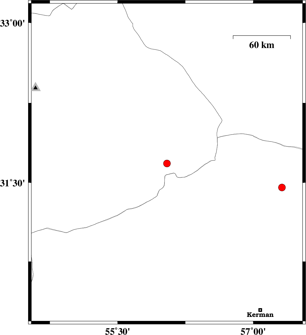 | 2023/04/17 | 17:09:47.4 | 20:39:47.4 | 31.454 | 57.317 | 12 | ML:3.5 | Kerman Province, 52 km North-East of Ravar |