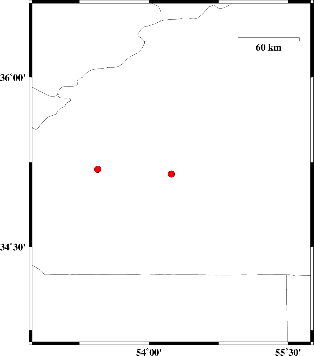 | 2023/05/02 | 02:21:38.3 | 05:51:38.3 | 35.147 | 54.241 | 7 | ML:3.2 | Semnan Province, 114 km South-West of Damghan | ||