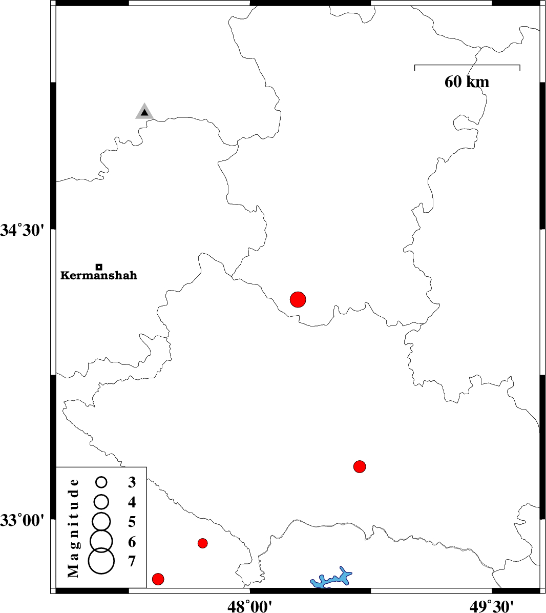 | 2023/04/20 | 11:29:22.2 | 14:59:22.2 | 32.874 | 47.706 | 12 | ML:2.7 | Ilam Province, 31 km South of Pol-e dokhtar |
