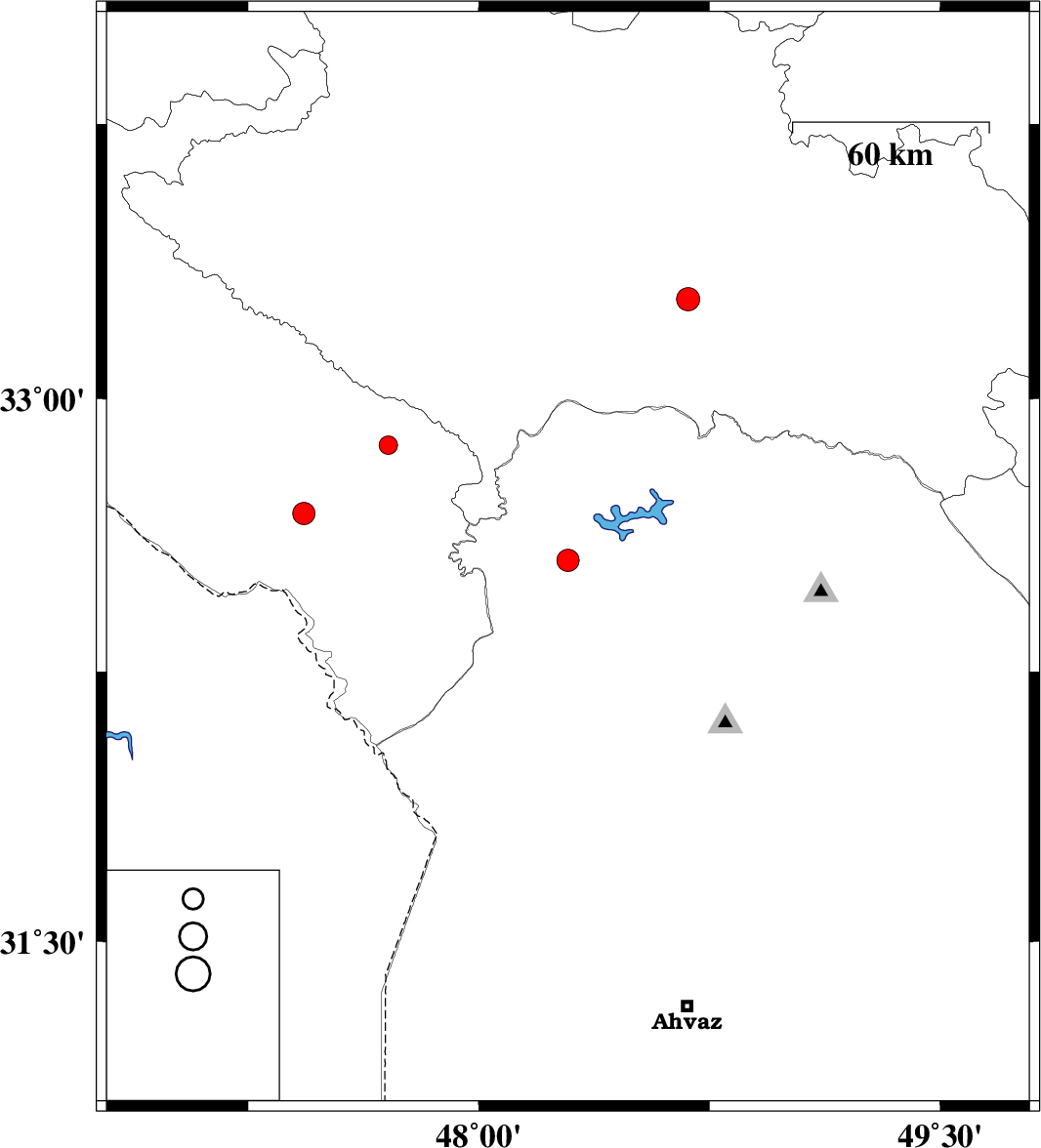 | 2023/04/20 | 11:29:22.2 | 14:59:22.2 | 32.874 | 47.706 | 12 | ML:2.7 | Ilam Province, 31 km South of Pol-e dokhtar |