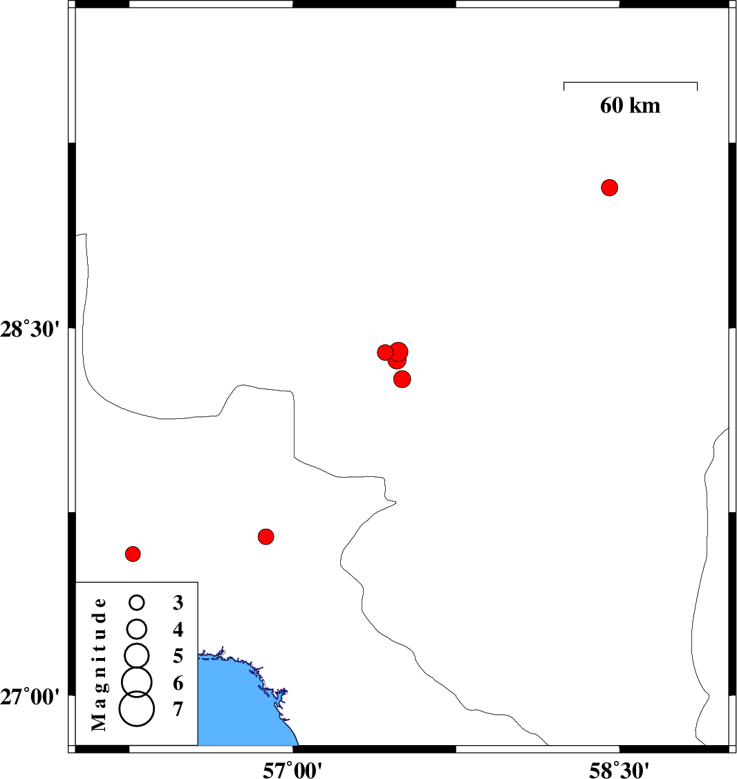 2022/03/22 08:02:34.3 12:32:34.3 28.40457.48412 ML:4 Kerman Province, 39 km South-West of Jiroft