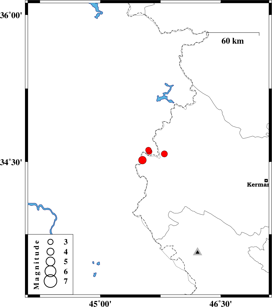 | 2023/05/14 | 05:12:01.8 | 08:42:01.8 | 34.62 | 45.599 | 12 | ML:3.2 | Iraq, 12 km North of Qasr-E-Shirin | ||