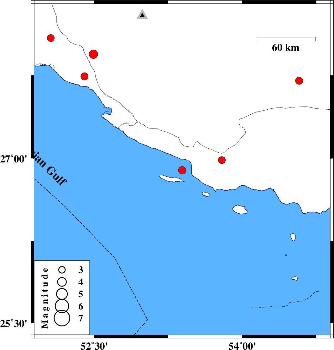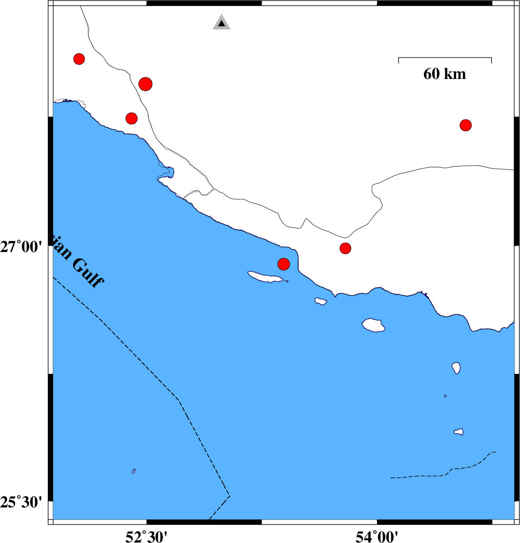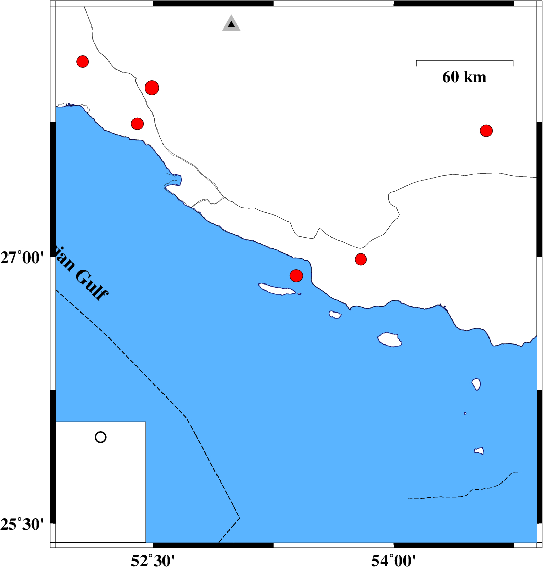 | 2023/05/14 | 15:18:04.3 | 18:48:04.3 | 26.892 | 53.392 | 12 | ML:3.5 | Persian Gulf, 54 km South-East of Lamerd | ||