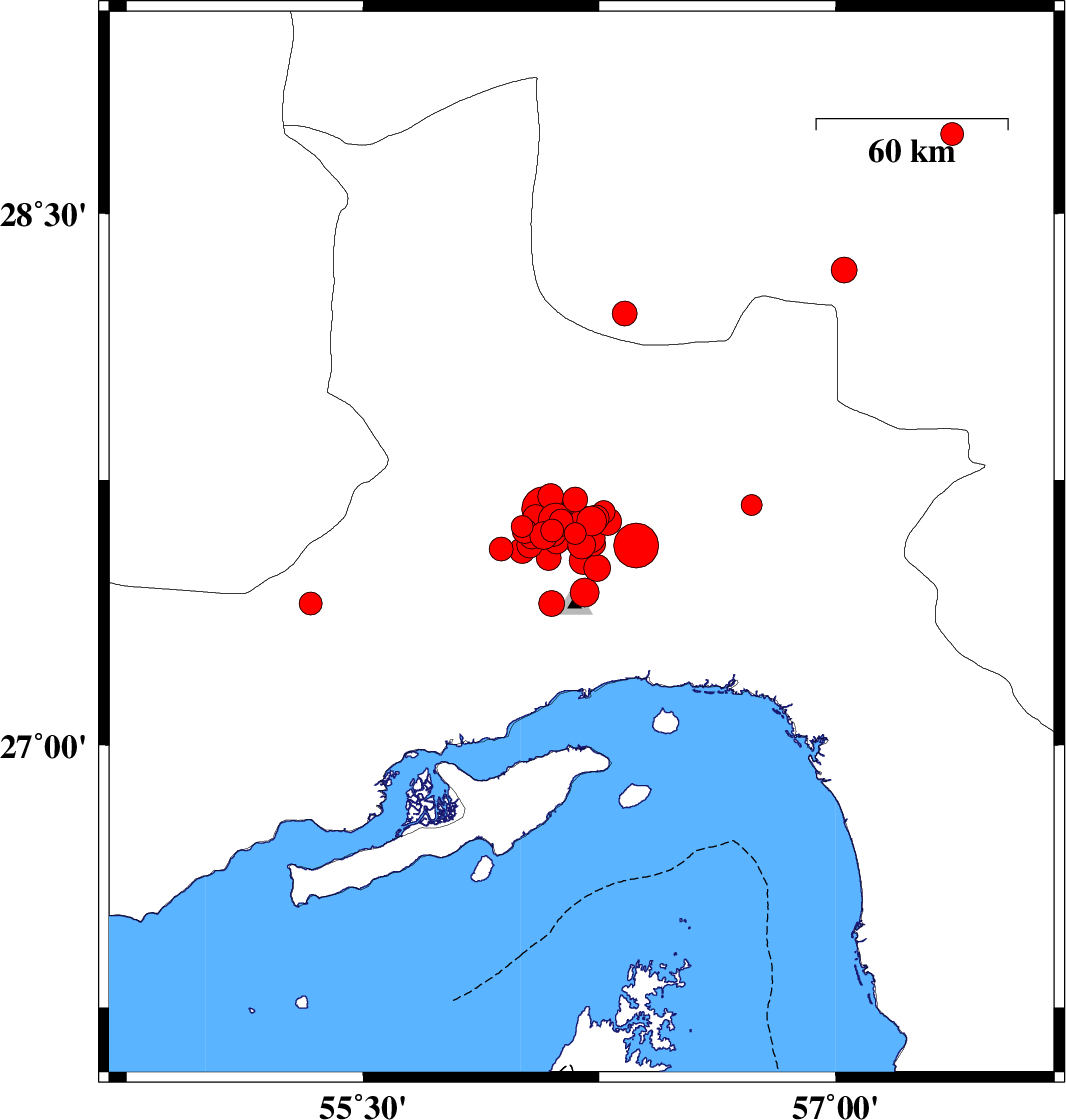 2021/11/15 03:55:19.7 07:25:19.7 27.65556.14812 ML:3.2 Hormozgan Province, 54 km North-West of Bandar-e abbas