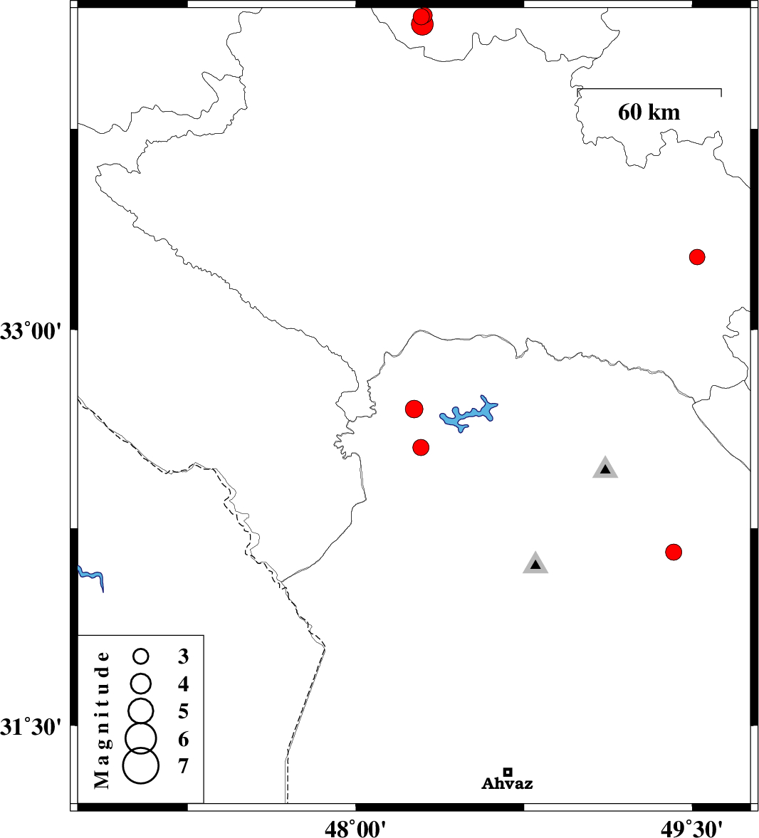 | 2023/06/04 | 16:22:10.1 | 19:52:10.1 | 32.701 | 48.26 | 12 | ML:3.5 | Khoozestan Province, 28 km North of Andimeshk | ||