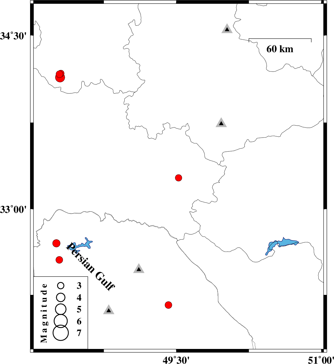 | 2023/06/04 | 16:22:10.1 | 19:52:10.1 | 32.701 | 48.26 | 12 | ML:3.5 | Khoozestan Province, 28 km North of Andimeshk | ||