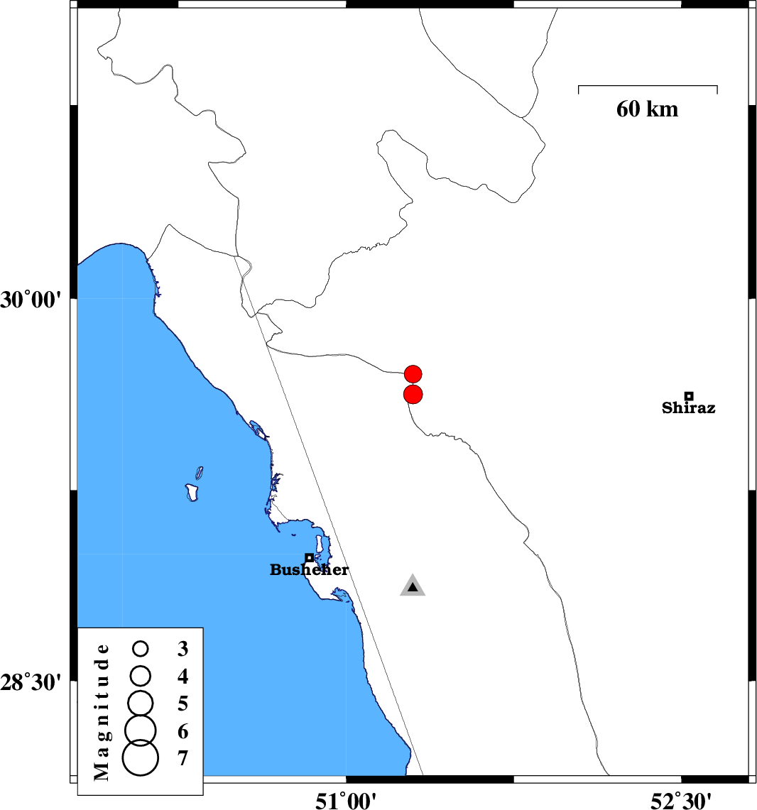 | 2023/06/05 | 09:58:49.5 | 13:28:49.5 | 29.625 | 51.299 | 16 | ML:3.8 | Fars Province, 34 km -West of Kazerun |