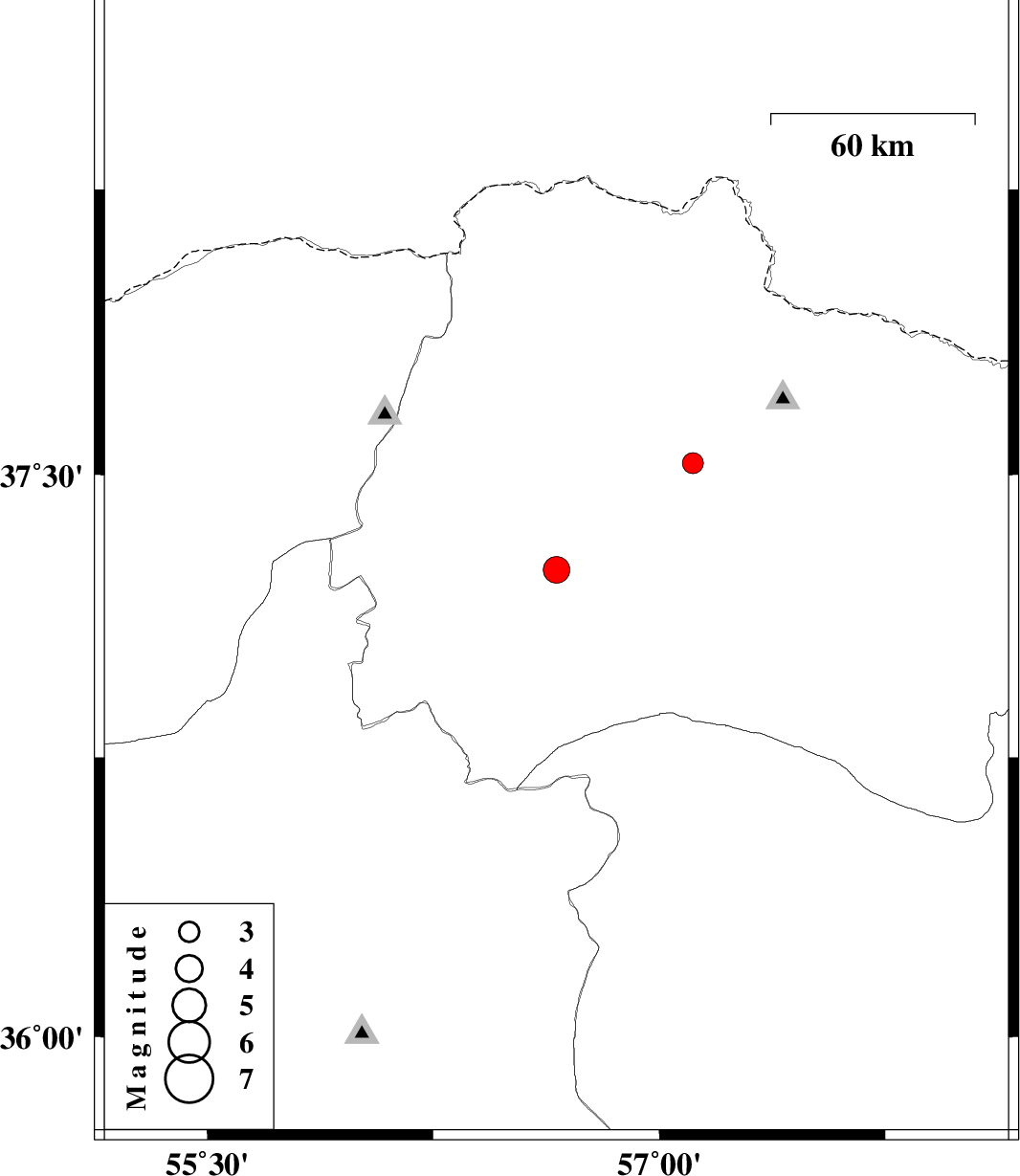 | 2023/06/03 | 09:23:53.0 | 12:53:53.0 | 37.249 | 56.659 | 12 | ML:4 | Khorasan(north) Province, 41 km North-East of Jajarm | ||