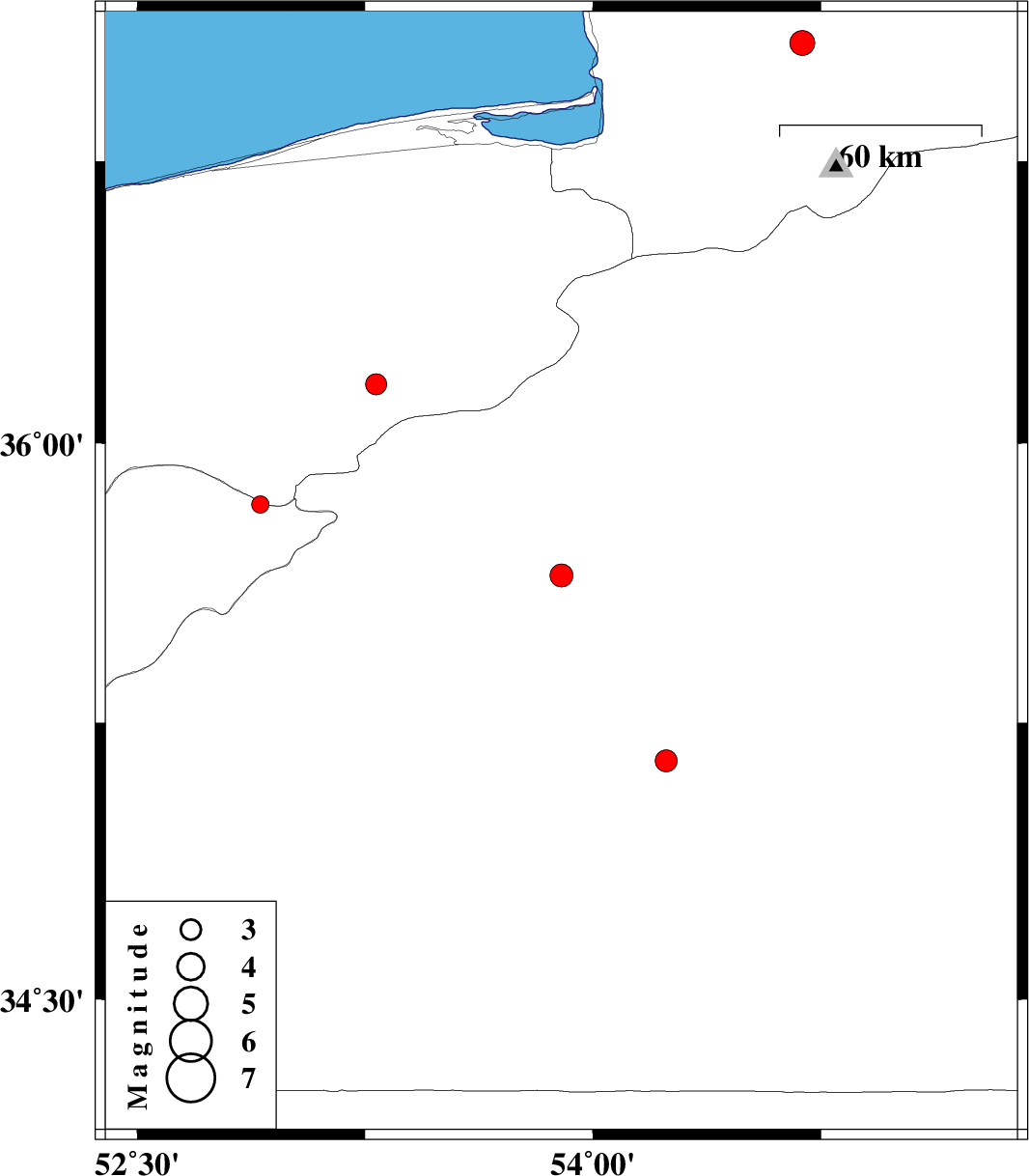 | 2023/06/01 | 15:36:29.4 | 19:06:29.4 | 35.646 | 53.896 | 8 | ML:3.4 | Semnan Province, 46 km -East of Semnan | ||
