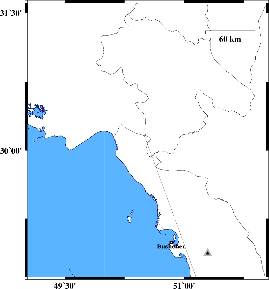 | 2023/06/05 | 09:58:49.5 | 13:28:49.5 | 29.625 | 51.299 | 16 | ML:3.8 | Fars Province, 34 km -West of Kazerun |