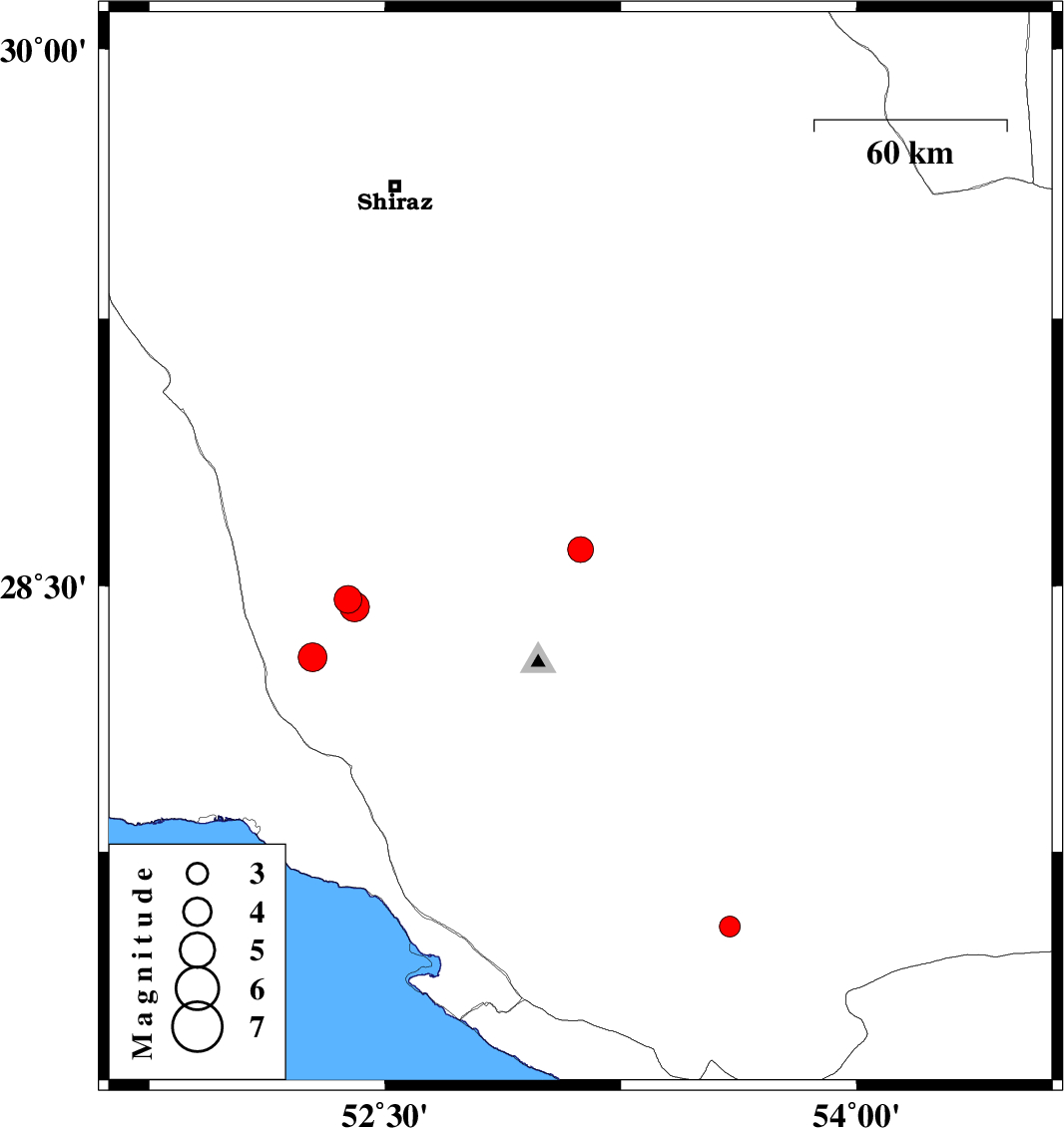 | 2023/05/18 | 11:24:55.3 | 14:54:55.3 | 27.538 | 53.597 | 12 | ML:3 | Fars Province, 48 km North-East of Lamerd |