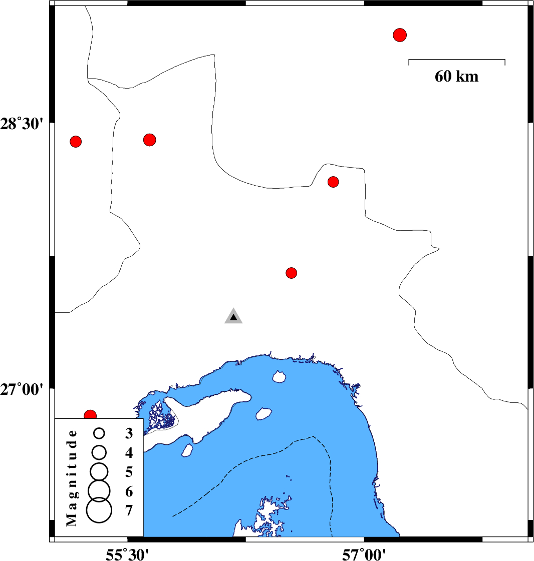 | 2023/06/15 | 17:09:31.4 | 20:39:31.4 | 27.654 | 56.538 | 12 | ML:3.1 | Hormozgan Province, 58 km North-East of Bandar-e abbas | ||