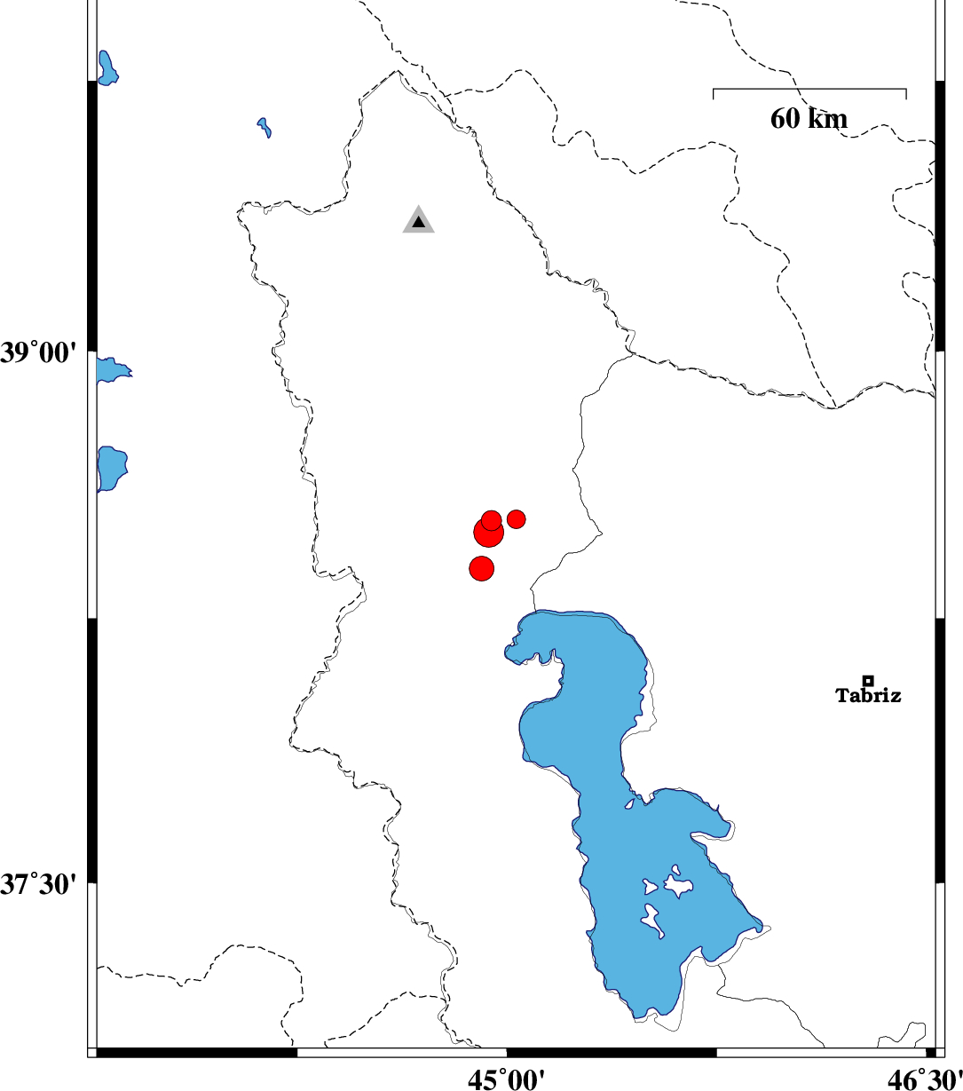 | 2023/05/28 | 15:22:11.8 | 18:52:11.8 | 38.39 | 44.91 | 9 | ML:4 | Azarbaijan Gharbi Province, 19 km South of Khoy |