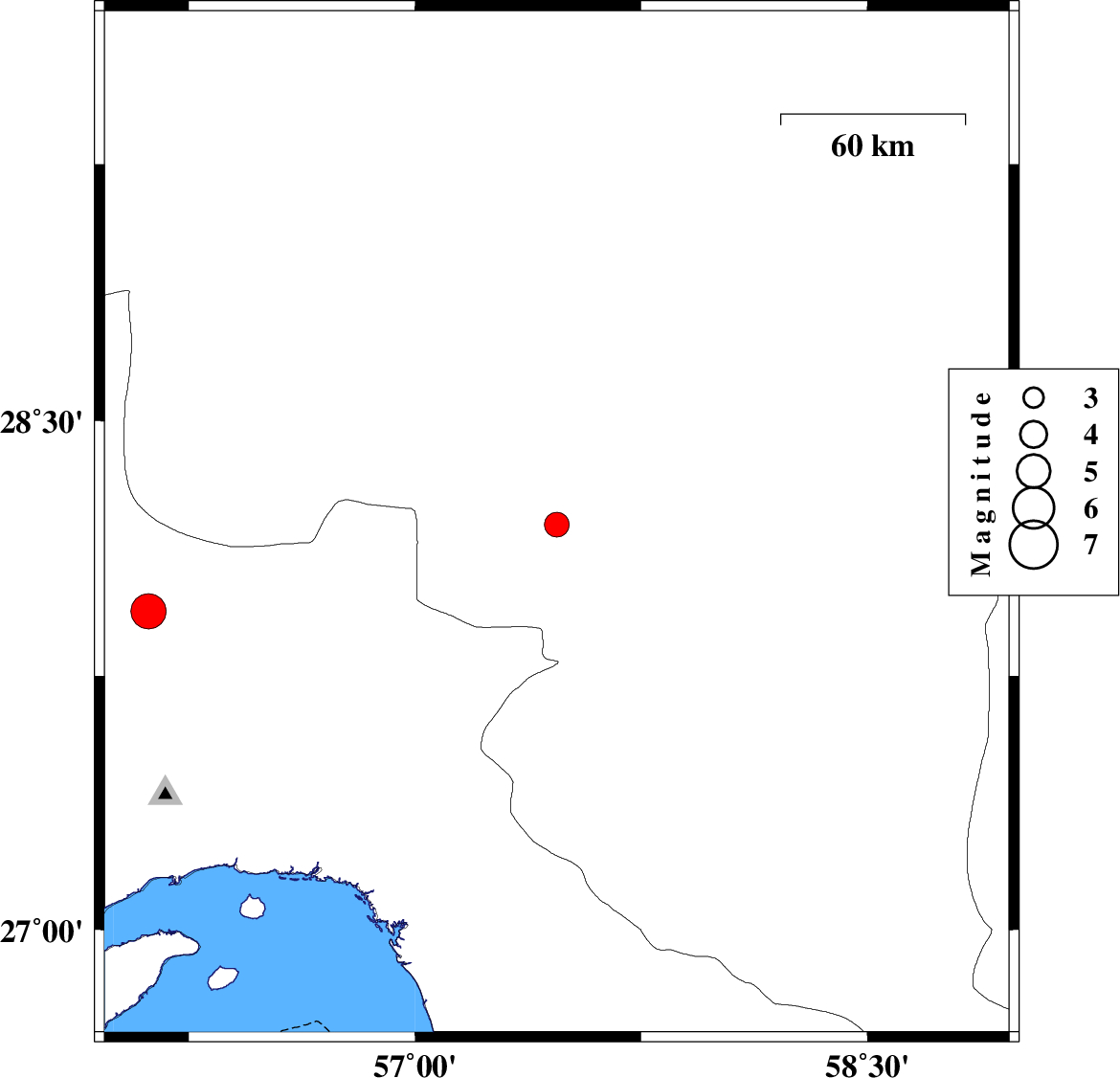 2023/06/23 | 05:17:10.8 | 08:47:10.8 | 28.196 | 57.47 | 10 | ML:3.6 | Kerman Province, 35 km North-West of Kahnuj | ||