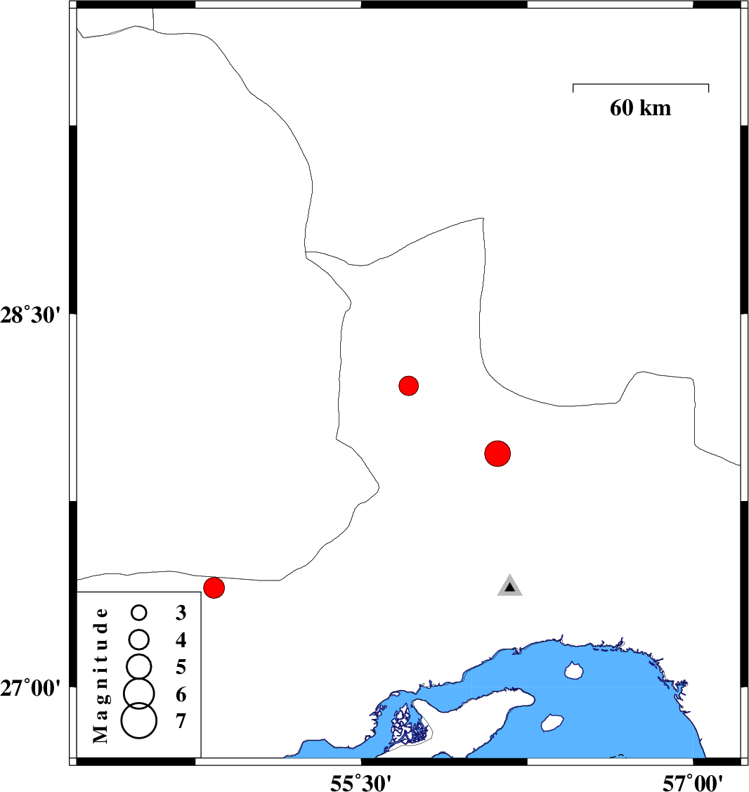 | 2023/06/22 | 11:55:48.5 | 15:25:48.5 | 27.401 | 54.834 | 16 | ML:4.2 | Hormozgan Province, 52 km North-East of Bastak | ||